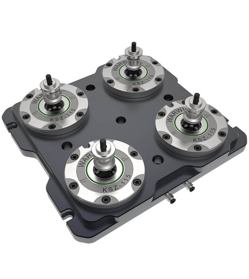 The KSZ is a modular quick-change pallet system for quickly and precisely resetting workpieces and clamping machines on 3-, 4- or 5-axis machining centers. It reduces recalibration time by up to 90%, providing optimal machine utilization.